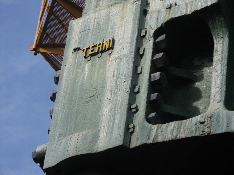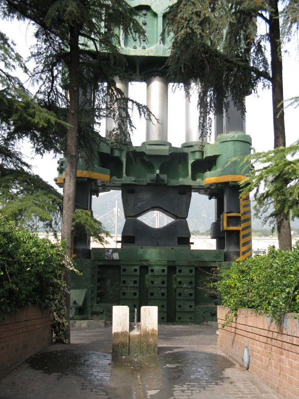 La storia della pressa da 12.000 tonnellate a Terni inizia nel 1934 quando il Governo italiano affida alla Società "Terni" la realizzazione dei programmi di armamento che richiedevano l'allestimento di una nuova flotta di navi da battaglia. Per eliminare al più presto le carenze di un'industria che era impiantisticamente debole. Il 17 luglio 1934 la Società Terni decide nell'ambito del progetto di ammodernamento delle infrastrutture di ordinare alla ditta inglese Davy Brothers la pressa da 12000 tonnellate. L' apporto della pressa è determinante sia nella produzione bellica che in quella civile. Negli anni ottanta la comparsa di alcune cricche (delle sottili fenditure) nella traversa inferiore fanno comprendere che ben presto si sarebbe dovuto procedere allo smantellamento della pressa e alla sua sostituzione. Il processo di recupero è cominciato nel 1994 e si è concluso alla fine del 1998. Pochi giorni dopo il termini dei lavori di restauro, il 6 gennaio 1999, questo singolare monumento simbolo della memoria industriale della città, è stato collocato in piazza Dante di fronte alla stazione ferroviaria cittadina.