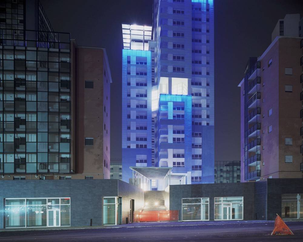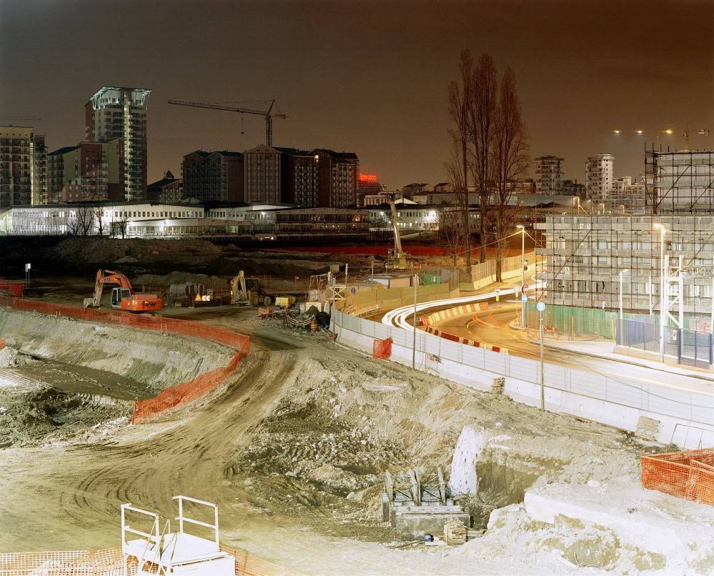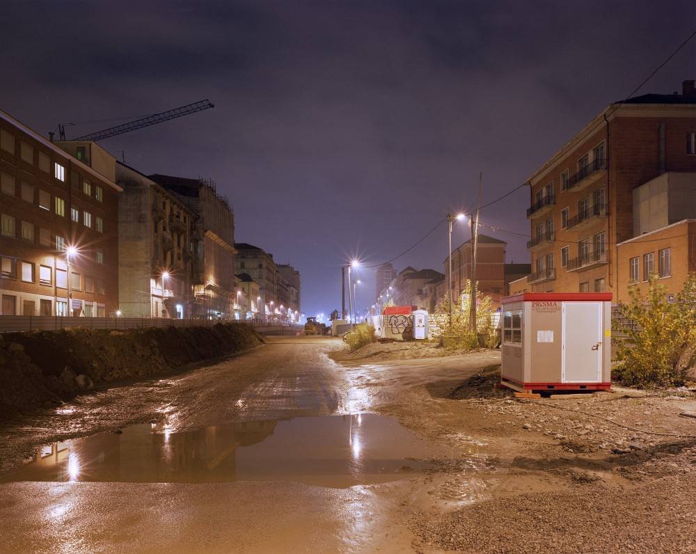La realizzazione del nuovo piano urbanistico torinese ha portato anche all'interramento dei binari ferroviari che dividevano la città in due parti separate. Oggi su quel tracciato corre il grande asse di scorrimento chiamato Spina Centrale che percorre la città, per circa 12 chilometri da Sud a Nord, contornato dalle nuovee urbanizzazioni pubbliche e private. La scelta di una restituzione fotografica notturna basata sul tradizionale metodo prospettico ha la funzione di precisare la percezione del luogo come spazio scenico, proseguendo l'esperienza della precedente serie OLIMPIA (2004-2006), dedicata alle trasformazioni urbanistiche della Torino olimpica. Notizie in continuo aggiornamento sulla Spina Centrale di Torino all'indirizzo: http://it.wikipedia.org/wiki/Spina_Centrale Fulvio Bortolozzo è nato nel 1957 a Torino, dove vive e lavora. Le sue fotografie sono dedicate in prevalenza all'osservazione dei luoghi. Le attività didattiche e culturali si svolgono nell'ambito della fotografia contemporanea.